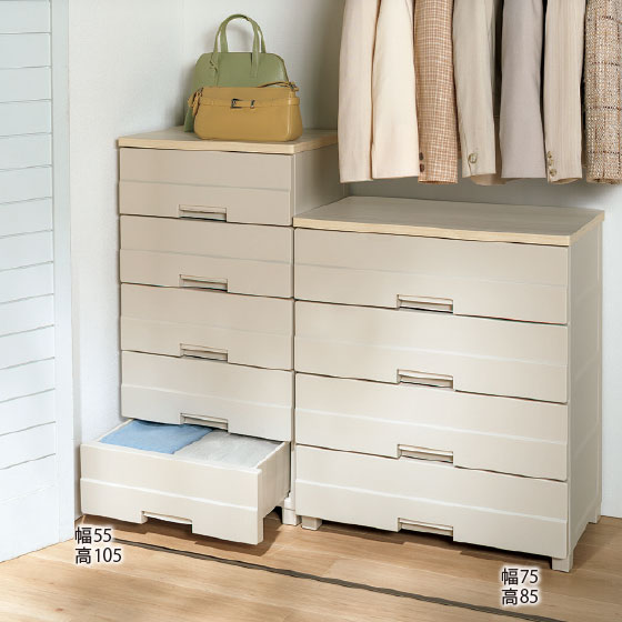 ●耐荷重:天板=10kg、引き出し=幅55/4kg、幅65/5kg、幅75/6kg(1段当り)