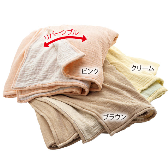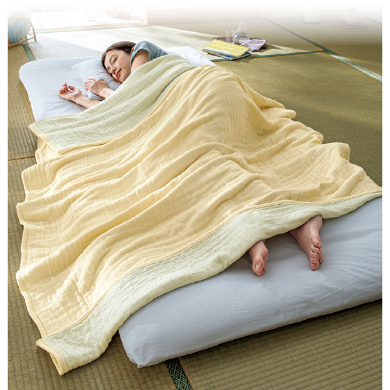 ガーゼ素材を6層に織り上げ、吸汗・通気性がよく肌当たりもやさしい。