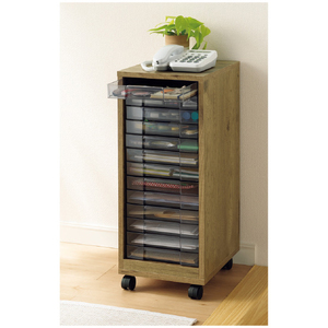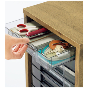 見やすいA4 サイズ対応のアクリルの引き出しがたっぷり13段。