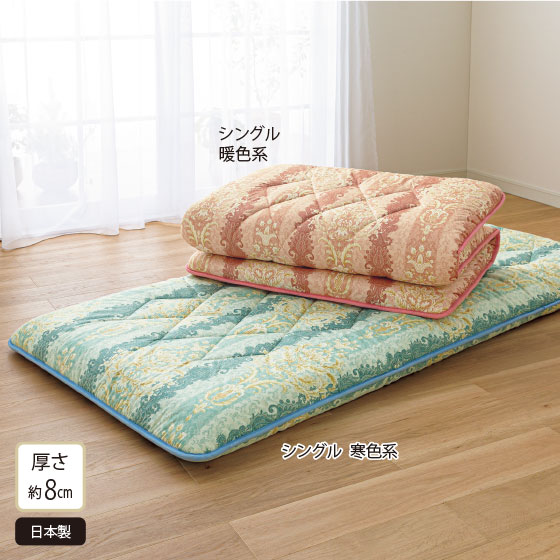 ●素材:側地=綿100%、詰めもの=巻わた/毛100%、中芯/ポリエステル100%固わた(シングル=計4.3kg、ダブル=計6kg)