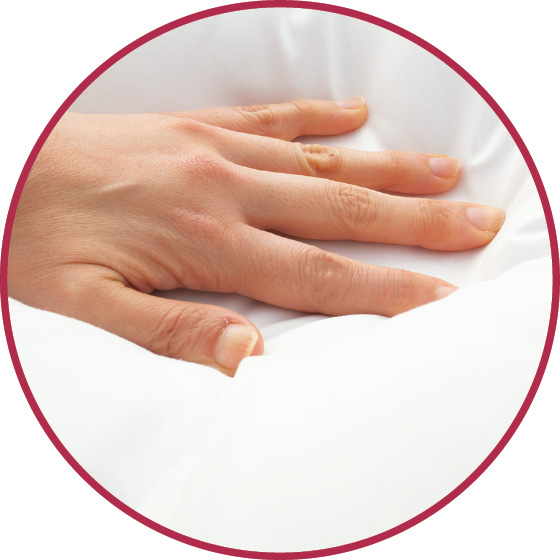 側生地は厚みのあるなめらかなツイル生地。高密度な織りでダニもブロック。