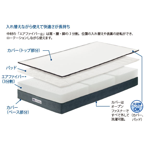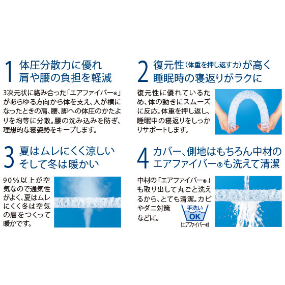 ●素材:カバー=ポリエステル100%、パッド=ポリエステル100%、中材(エアファイバー)=ポリエチレン100%