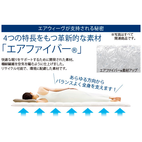 多くのユーザーが愛用するエアウィーヴで、全身を気持ちよく支えて快眠へ。目覚めのさわやかさが1日の活力につながります。