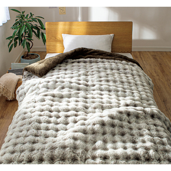 思わず頬ずりしたくなる、ふわふわ毛足。ファー×蓄熱保温わたでぬくぬく。