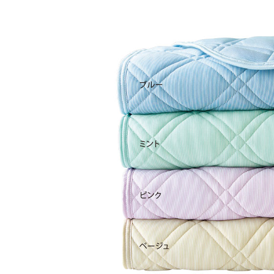 ●素材:表側=ポリエチレン55%・ポリエステル25%・キュプラ20%、裏側=ポリエステル100%、詰めもの=ポリエステル100%(抗菌防臭加工、シングル=0.2kg、セミダブル=0.24kg、ダブル=0.28kg、クイーン=0.32kg、キング=0.41kg)
