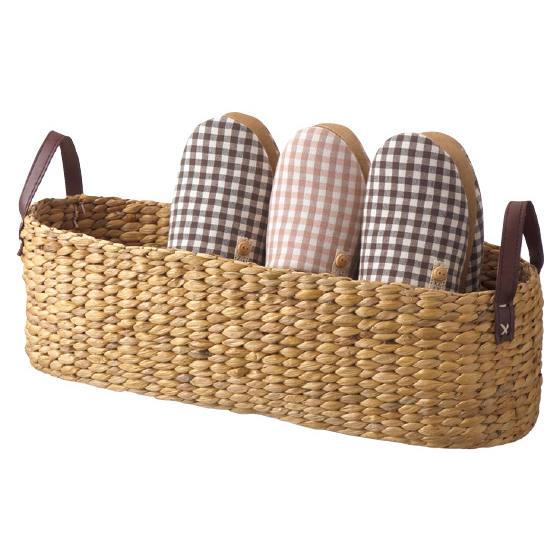 来客時にはバスケットごと玄関に置いておいてもいい感じです。でもカビがはえやすそうな素材なので、夏場は注意が必要かもしれません。