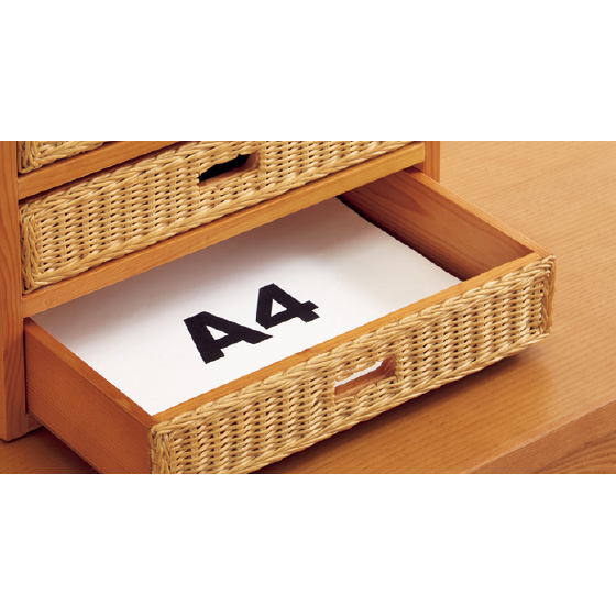 しっかりとした作りの引き出しはA4書類が入るサイズで、デスク回りにも◎。リビング小物やアクセサリー類の整理にもおすすめです。