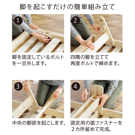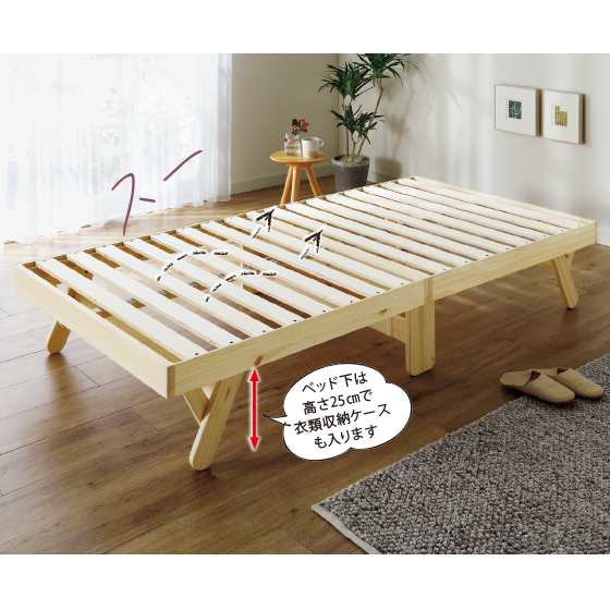 すのこ板が風を通してムレにくい。ベッド下は収納スペースにも活躍。
