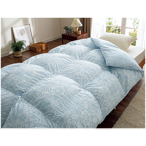 ●素材:側地=ポリエステル85%・綿15%、詰めもの=ポリエステル100%(中空糸1穴使用、シングル=1.6kg、ダブル=2.2kg)