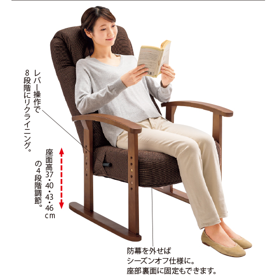 ●サイズ:幅63×奥74〜116×高100〜109(座面=幅49×奥45×高37・40・43・46)cm