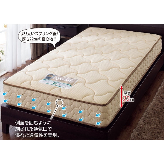 ●材質:張地=アクリル58%・ポリエステル42%(抗菌防臭加工)、中材=径1.83mmコイルスプリング・羊毛わた