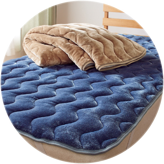 やわらかな肌触りと2層の中わた。暖かさたっぷり、ふわぽかの寝心地。