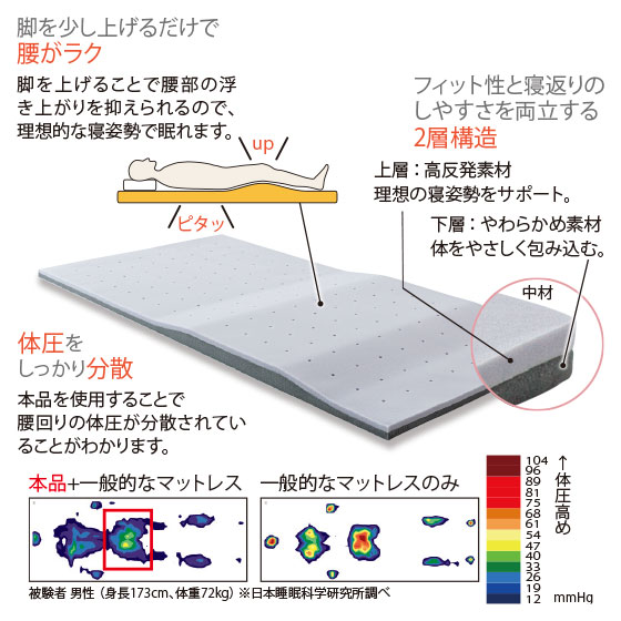 お手持ちの敷きふとんやマットレスの上にのせるだけで、理想的な寝姿勢に。