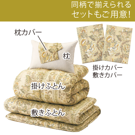 ※ふとん(特に敷きふとん)は使用状況によって、程度の差はありますが、必ずヘタリ(ボリューム感や弾力性がだんだんなくなる状態)が商品の特性上発生します。ご了承ください。※寝具商品は、生地幅の関係上ハギ(つぎ目)が入ることがございます。また裁断の都合により柄の出方が多少異なりますので、あらかじめご了承ください。