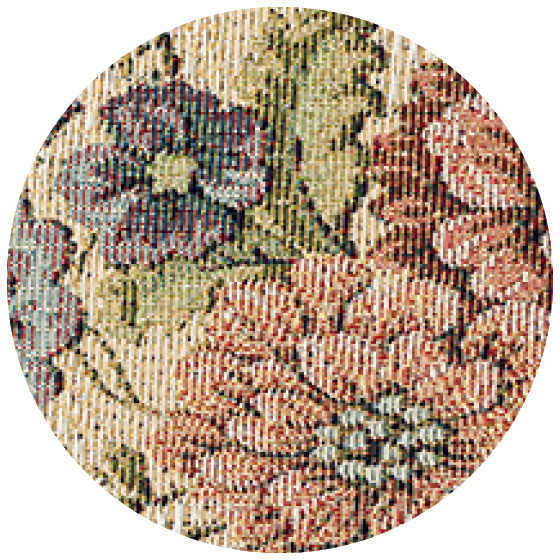 高級感のある金糸入りのジャカード織。立ち上がりやすいひじ掛け付き。