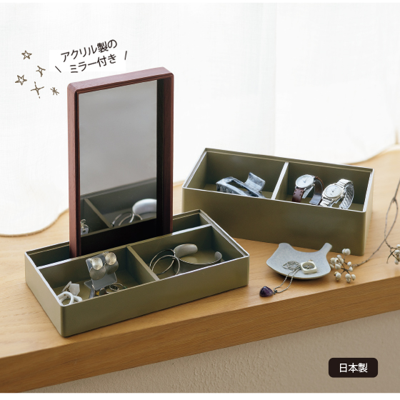 深さの異なる2段タイプ。仕切り付きで整理もラク。インテリアに映える木目の美しさも魅力。