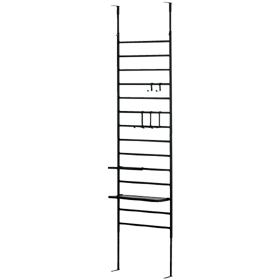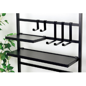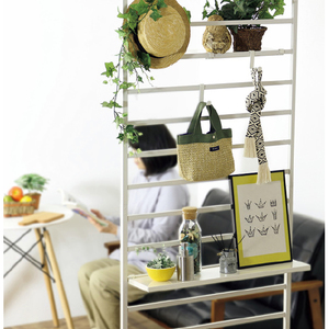 ●耐荷重:40kg(全体)、ラダーパイプ=10kg(1本当り)、棚=5kg(1枚当り)、フック=5kg(1個当り)