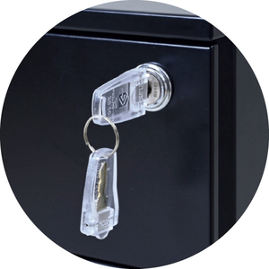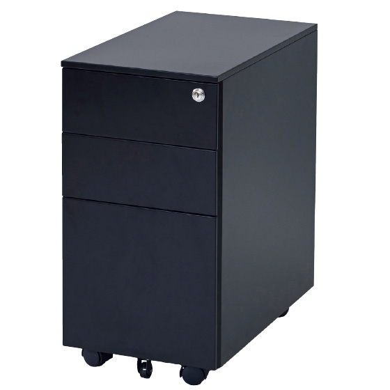 丈夫なスチール製でマグネットにも対応。ダイニング使いにもおすすめ。鍵をかけるとすべての引き出しが同時にロック。