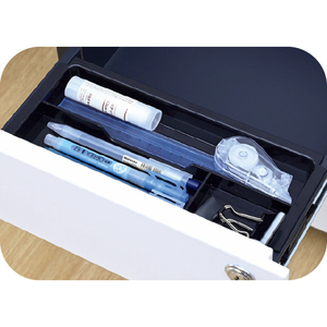 上段引き出し内には便利なペントレー付き。