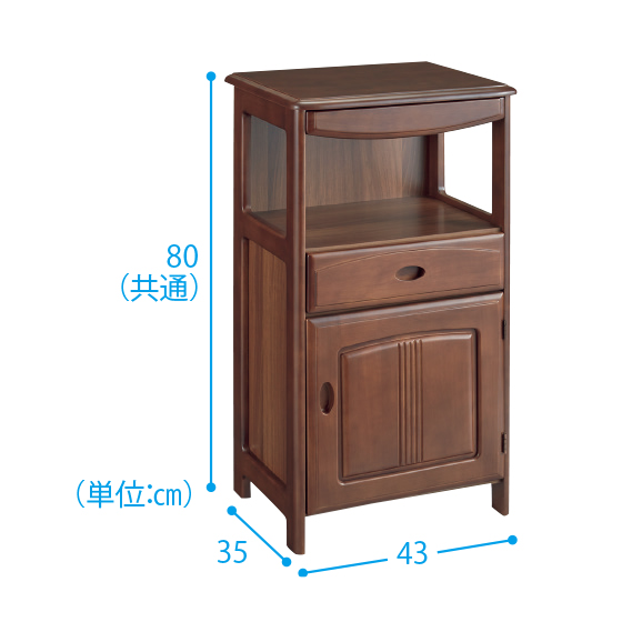 ●サイズ:スリッパラック=幅35×奥31×高80cm、電話台=幅32×奥33×高80cm、FAX台=幅43×奥35×高80cm