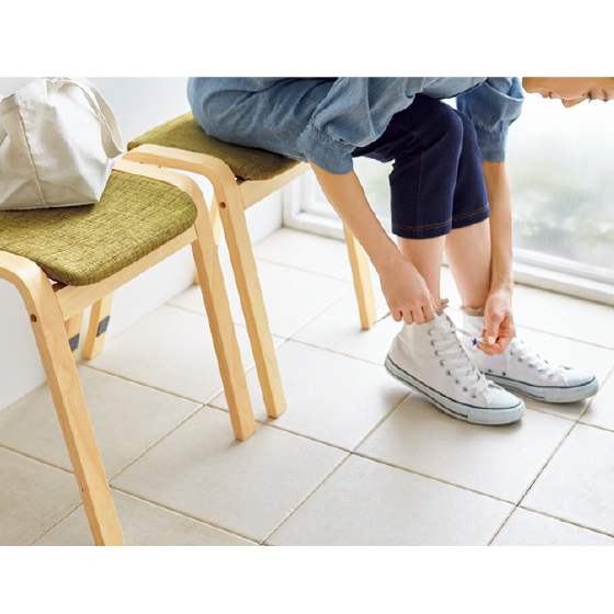 大勢の来客時は、座っていただくのも大変。重ねてすっきり収納できるこのスツールなら、ふだんは場所を取らず、必要なシーンでサッと活躍。飽きのこないシンプルなデザイン、女性にもラクに運べる軽さです。スタッキングでき、場所を取りません。座面は、ウレタンフォーム入りでふっくら。ミックス感のある張地。