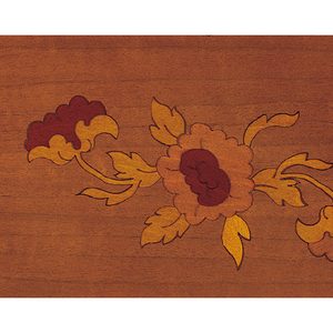 さまざまな色合いの天然木を組み合わせた象嵌技法の模様が美しい。
