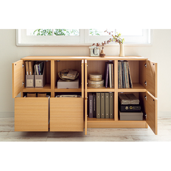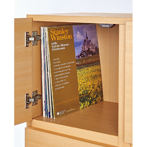 扉収納はレコードも入るサイズ。雑誌やA 4ファイルもスッキリ収納。