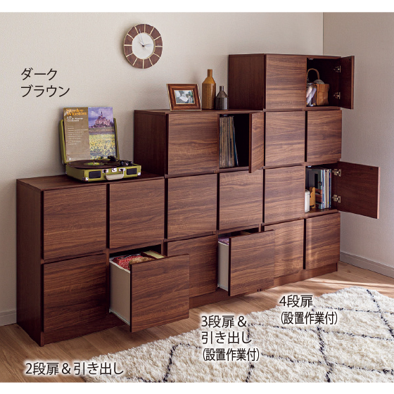 ※扉&引き出しタイプの2段と3段は最下段のみ引き出し、4段は下2段が引き出しです。