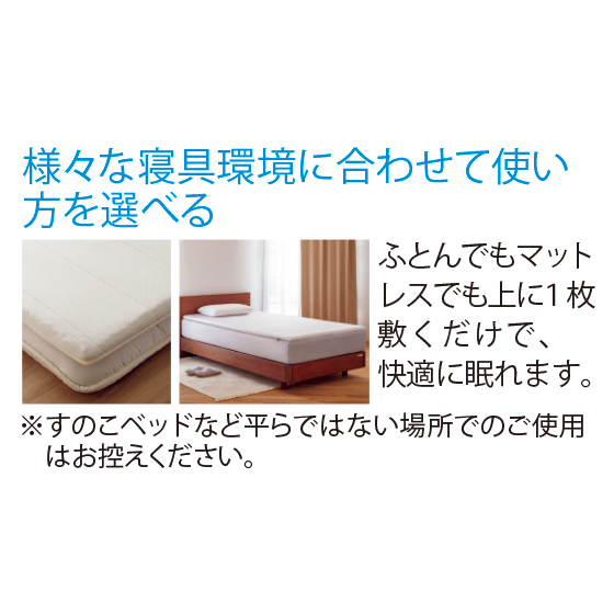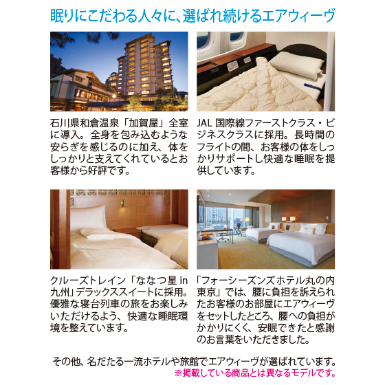 ふとんで寝ている家族が、腰や背中が痛いというので調べていたら、このエアウィーヴにたどり着きました。実際に使用してみると高反発で体を軽く押し返してくれる感覚があり、寝返りがしやすく驚きました!今あるベッドやふとんに使えて便利です。しかも様々なアスリートの方が支持していることも、採用の決め手となりました。