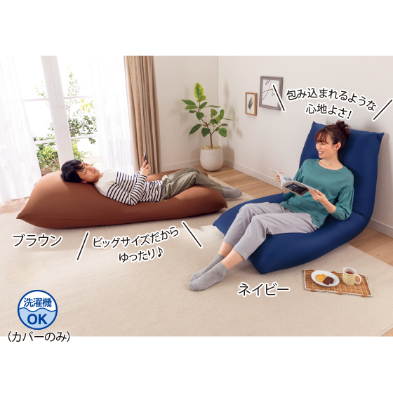 体を預けるだけで勝手にフィット!大きなリラックスビーズクッション。