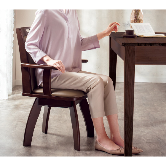 背当たりのよいクッションとカーブ形状で座り心地を追求。回転式も選べます。