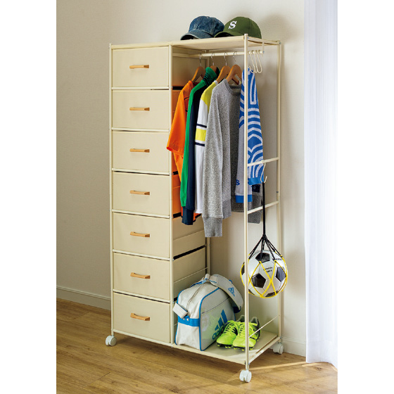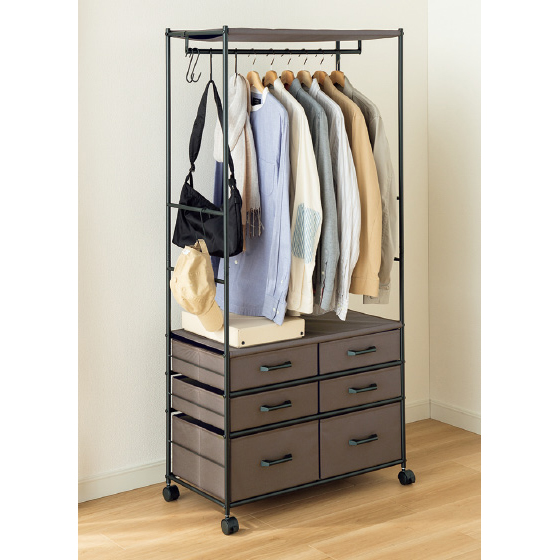 引き出しとハンガー収納が合体し、アウターから肌着までこれ1台に。