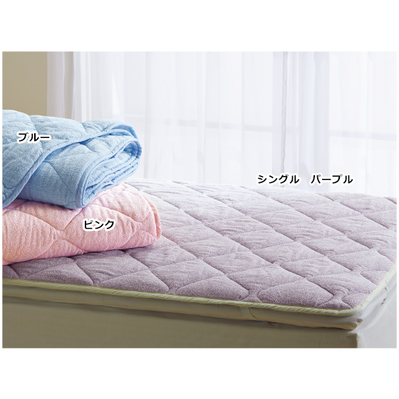 吸水性に優れ、ベトつかない、サラサラのタオル地です。裏4隅にゴムベルト付き。