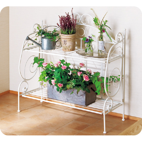 室内に置いても雰囲気を損ねないエレガントなデザイン。使うときだけサッと広げて簡単に設置できる折りたたみ式です。耐荷重10kg(1段当り)。