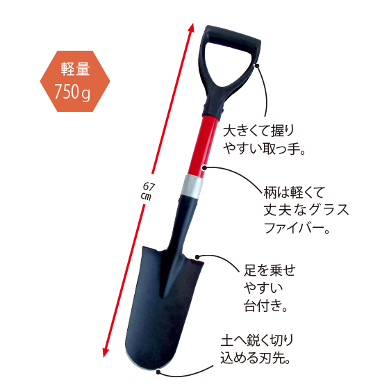 ●材質:刃=スチール(粉体塗装)、柄=グラスファイバー(木芯)、取っ手=ポリエチレン樹脂