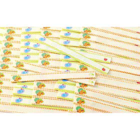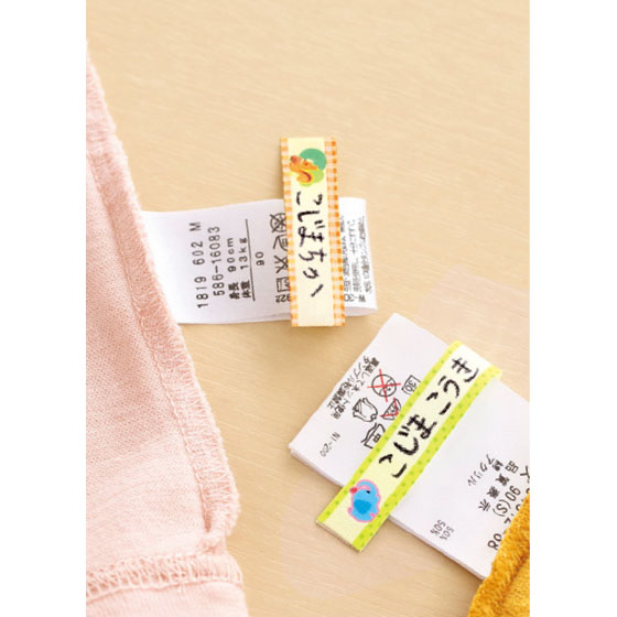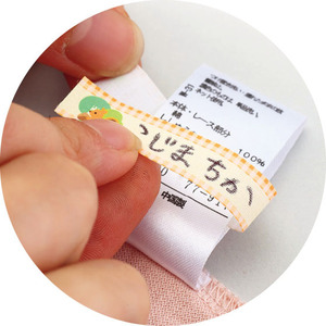 名前を書いて、強力シールで洋服の洗濯タグに簡単装着。外すときはハサミで切ればよいから、お下がりにする際も便利。約4cm幅までの洗濯タグに対応。