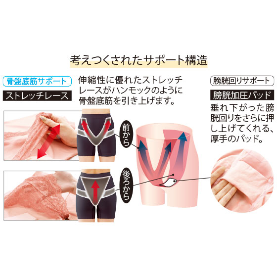 見た目はおしゃれなレースガードル。実は尿漏れ、頻尿の味方です!