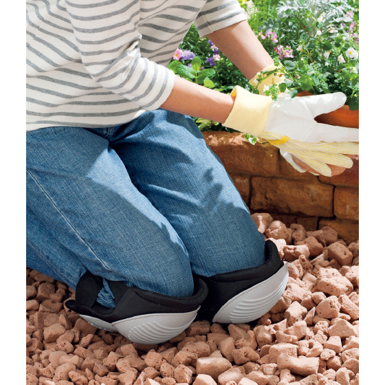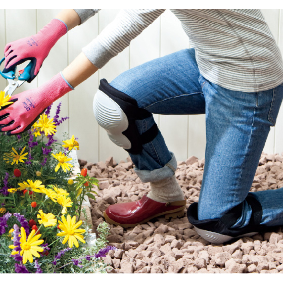 クッション材入りなので、砂利の上でひざをついても大丈夫。ワンタッチで着脱できる手軽さも魅力です。