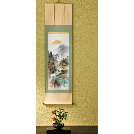 ●材質:本紙=新絹本、表装=洛彩緞子・綿、軸先=陶磁器