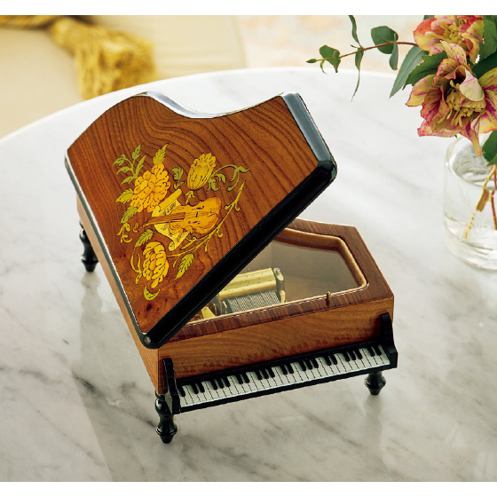 音色から佇まいまで全てが美しいオルゴールブランド「オルフェウス」。ピアノを精巧に模した響体には、イタリアの職人技が光る象嵌細工で飾った絵画のような彩り。そこに豊かで厚みのある音色を奏でる30弁を採用。眺めて音に浸って癒される、至福の時間をお愉しみあれ。