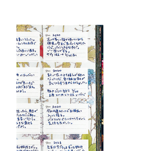 いつからでも始められる年号書き込み式。数行ずつの書き込みスペースで気負わずに続けられます。
