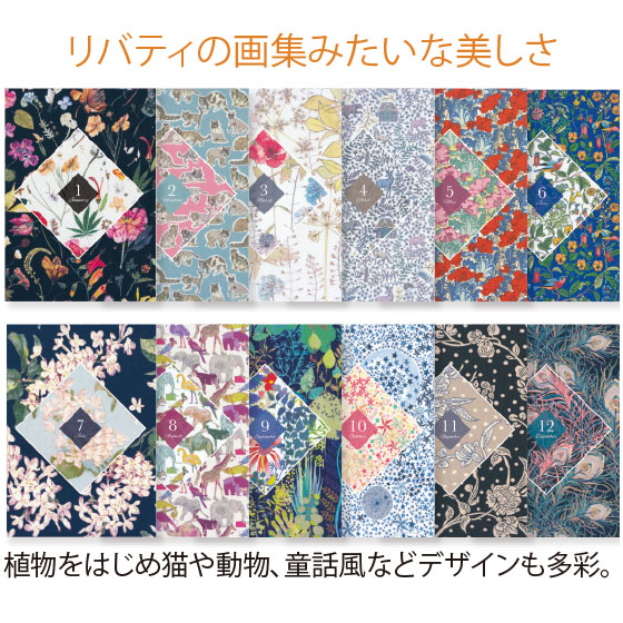 いつからでも始められる年号書き込み式。数行ずつの書き込みスペースで気負わずに続けられます。オールカラーで月替りの絵柄が楽しめます。スケジュールページも!
