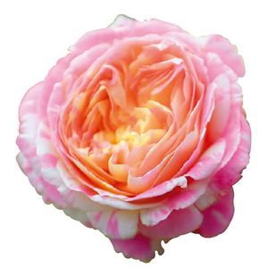 香りがとても良く、ピンクに淡いオレンジイエローの絞りが特徴的。