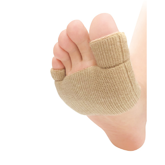 外反母趾や内反小趾(ないはんしょうし)に伴って生じる腱膜瘤(けんまくりゅう)と呼ばれるこぶが、靴にあたってツライ!そんなお悩みに。厚手の生地がクッション代わりになり、やさしく守ります。