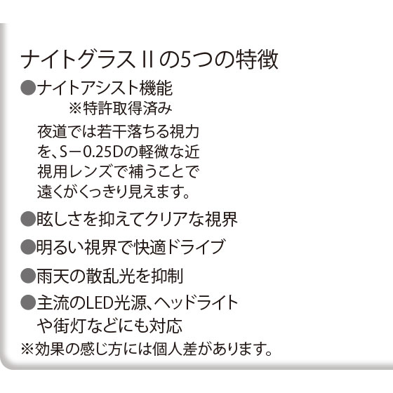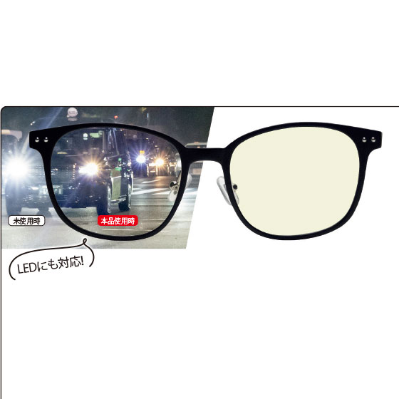 クリアな視界をキープできる、LED対応の夜専用メガネ。