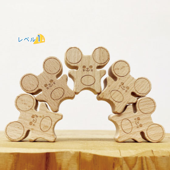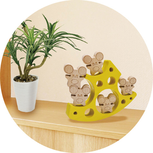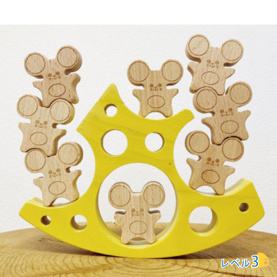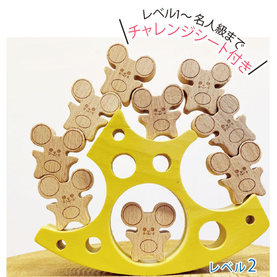 かわいいネズミとチーズのバランス積み木。天然木のやさしい手触りに癒されながら、集中力や思考力が鍛えられます。
