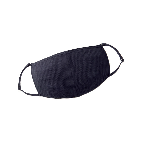 ラクに呼吸できる立体形状。肌になめらかなシルクに伸縮性をもたせ、顔にフィット。耳掛けひもは長さが調節できます。