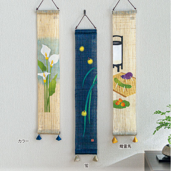 手織りの麻布が夏らしさを演出するインテリア。季節の柄が涼やかに彩ります。