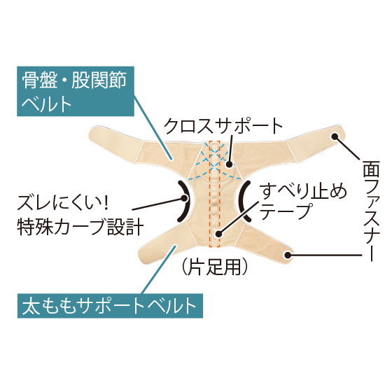 ●適応サイズ:<片足用>M〜L=骨盤回り/78〜98cm、太もも回り/35〜56cm、L〜LL=骨盤回り/90〜110cm、太もも回り/50〜71cm、<両足用>S〜M=骨盤回り/70〜80cm、太もも回り/36〜44cm、M〜L=骨盤回り/80〜90cm、太もも回り/40〜48cm、L〜LL=骨盤回り/90〜100cm、太もも回り/42〜52cm