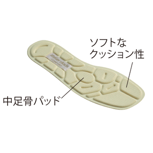 中敷は凹凸クッションで肌との接地面が少なく、ムレにくい構造。
